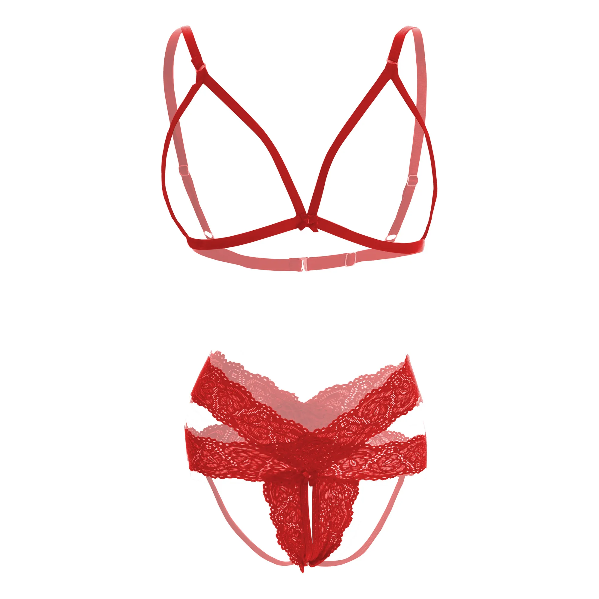 • Style: Open cups bra with crotch less crisscross strappy panty