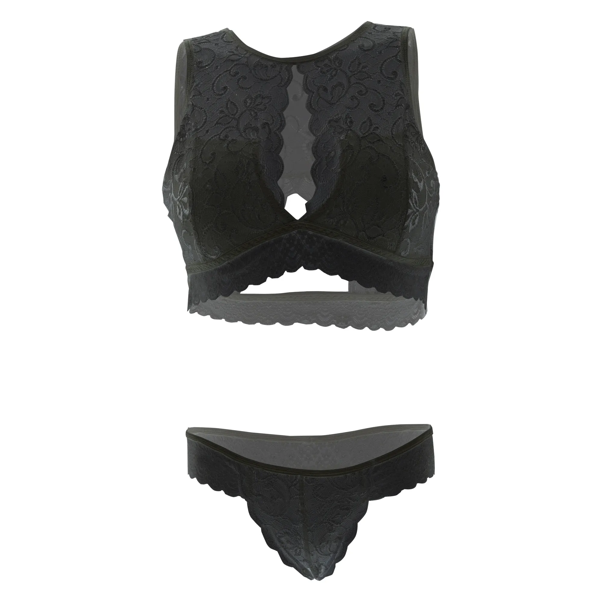 Women Keyhole Bralette and Thong Black Lingerie
