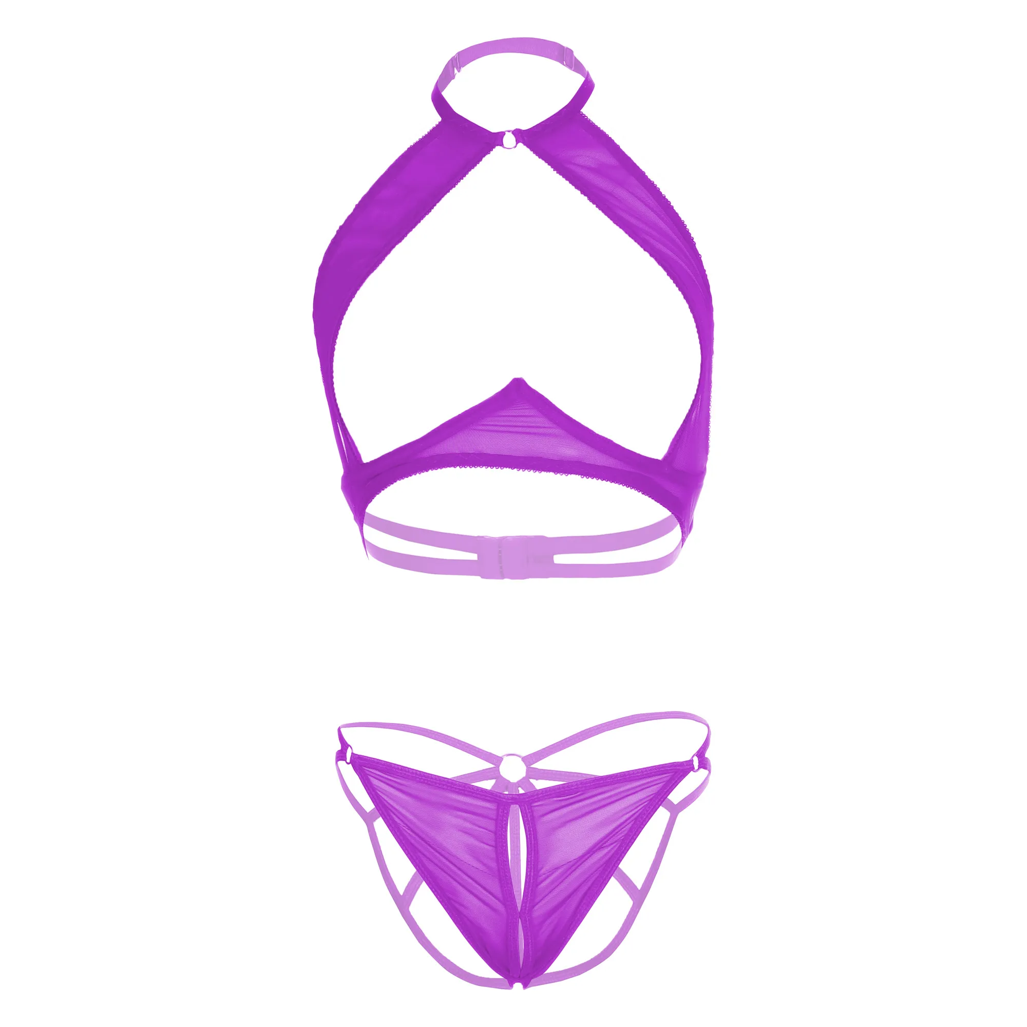 • Type: Solid lace transparent underwired halter neck lingerie set