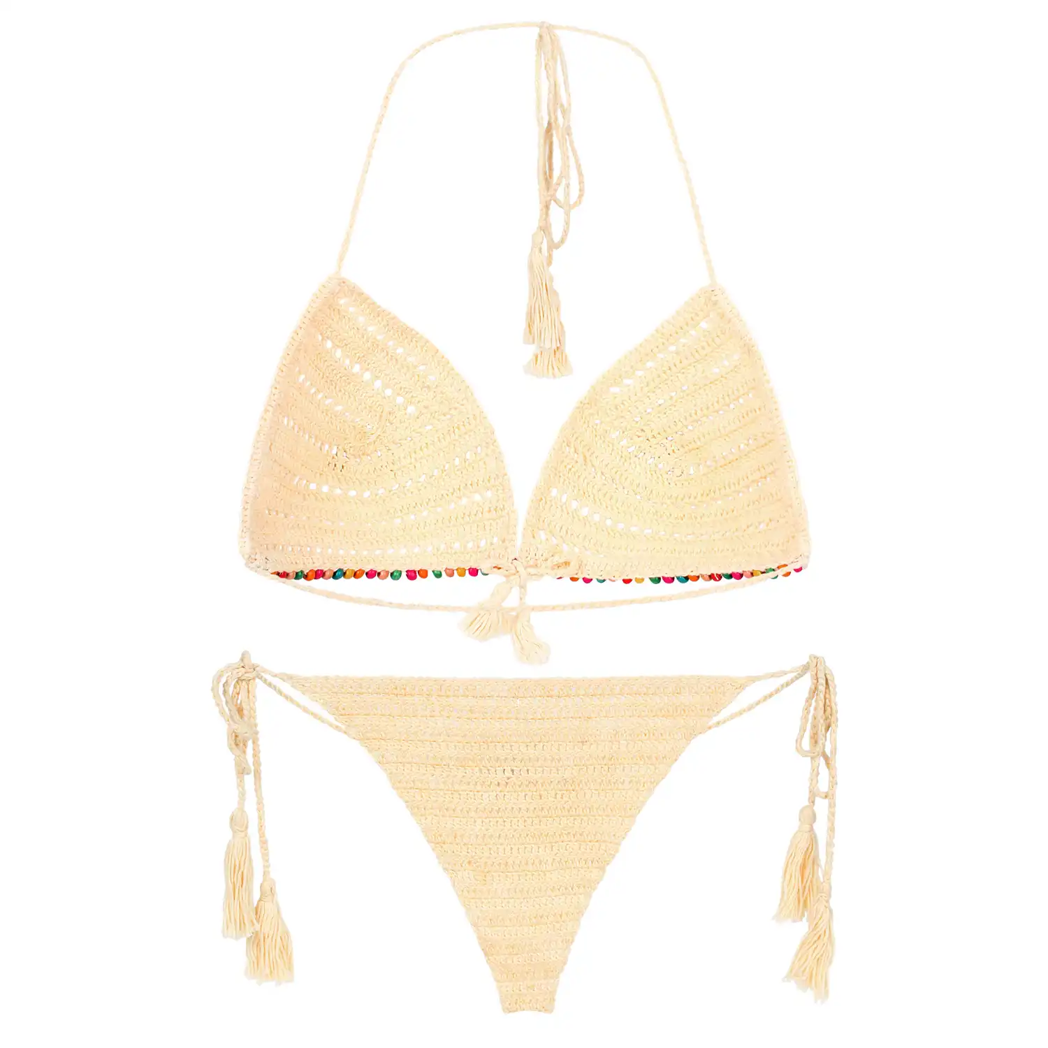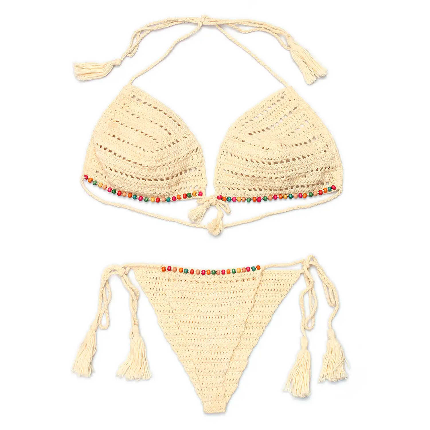 Women’s Beige Color Multicolor Pearls Design Crochet Lingerie