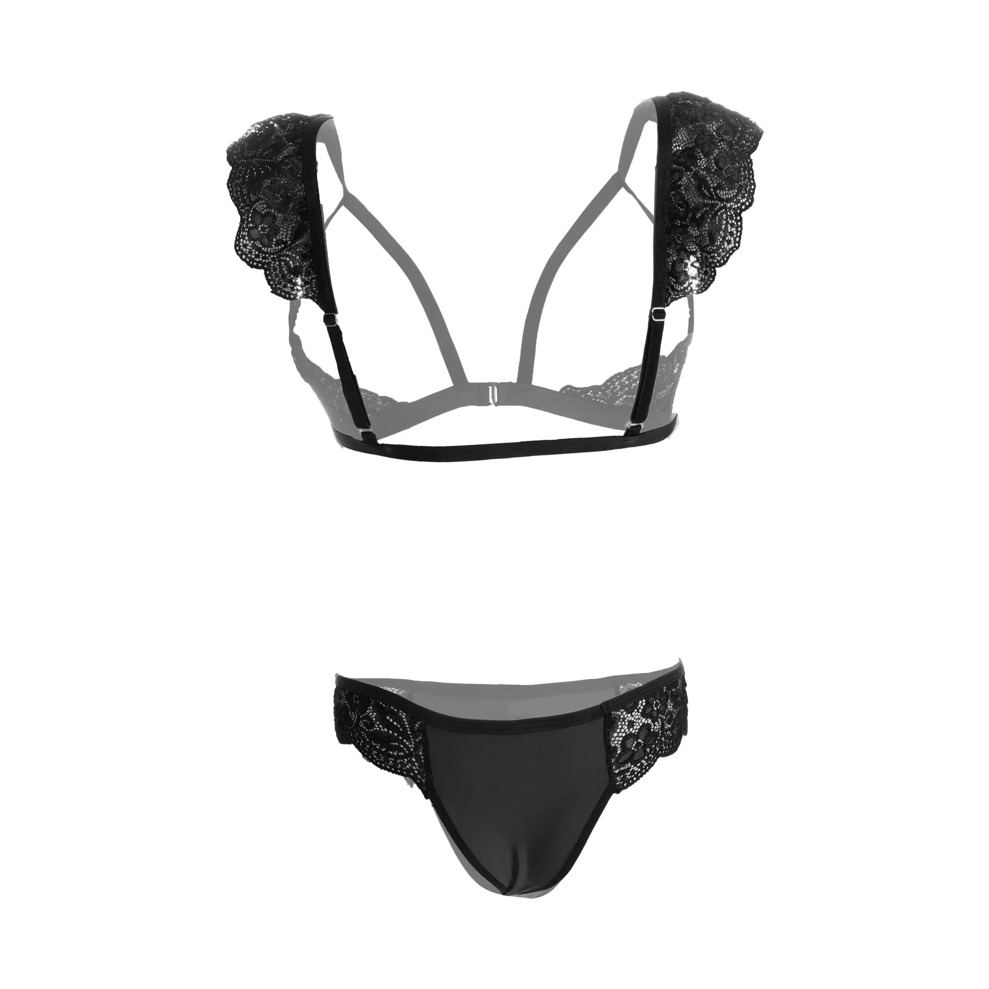 • Type: Open cups peek a boo strappy lingerie set