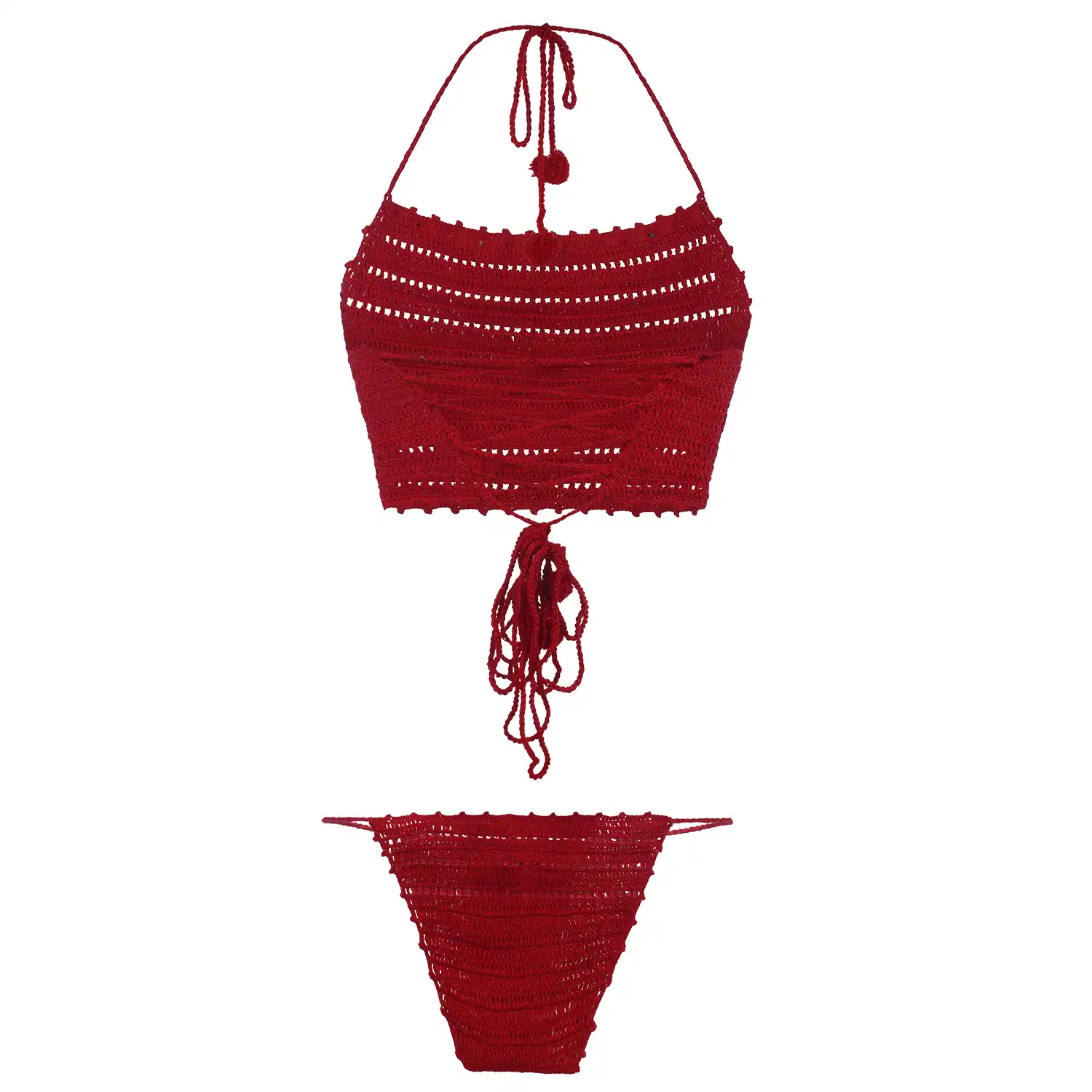 Women’s Kowris Shells Decorative Red Color Crochet Lingerie