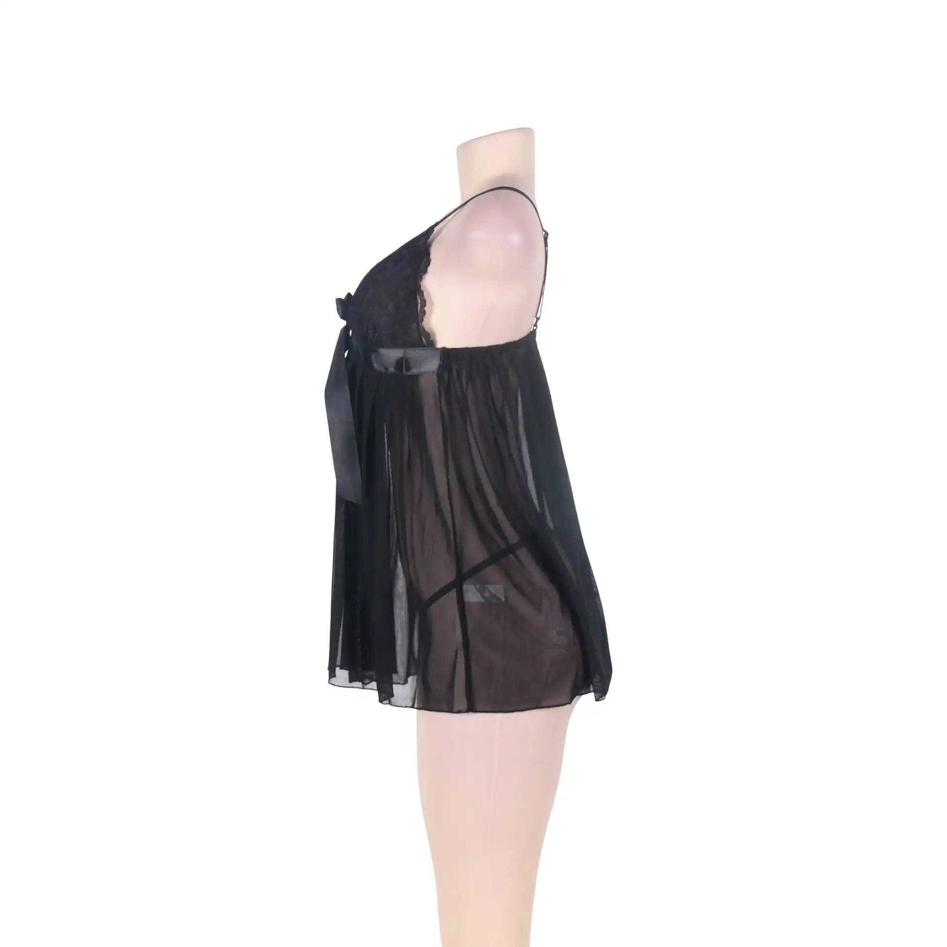Women’s Lace Front Ribbon Black Babydoll Nightwear