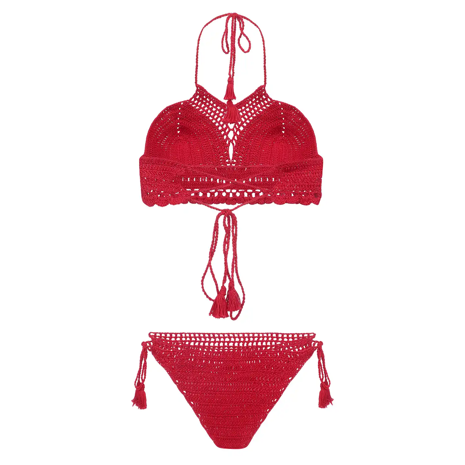 Women’s Red Color Crochet Lingerie with Side Latkans