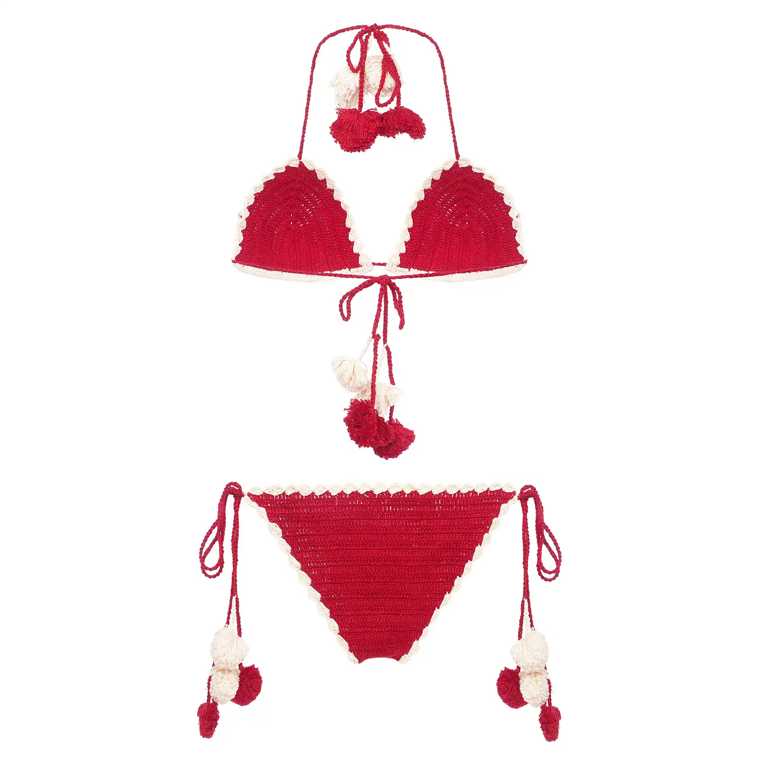 Women’s Side Border Red Color Crochet Lingerie with Tassels