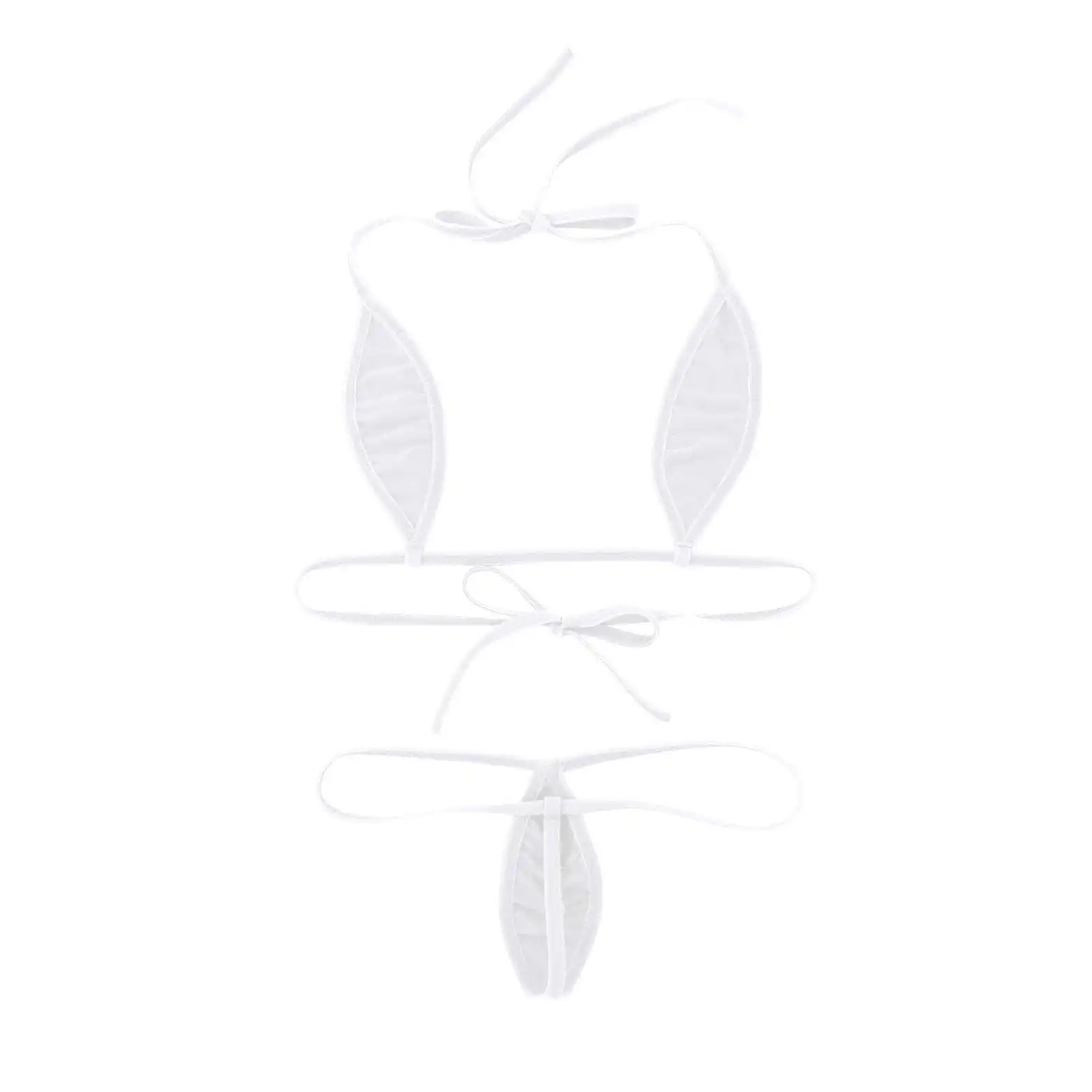Women’s Solid Design Ribbon Closure White Micro Bikini